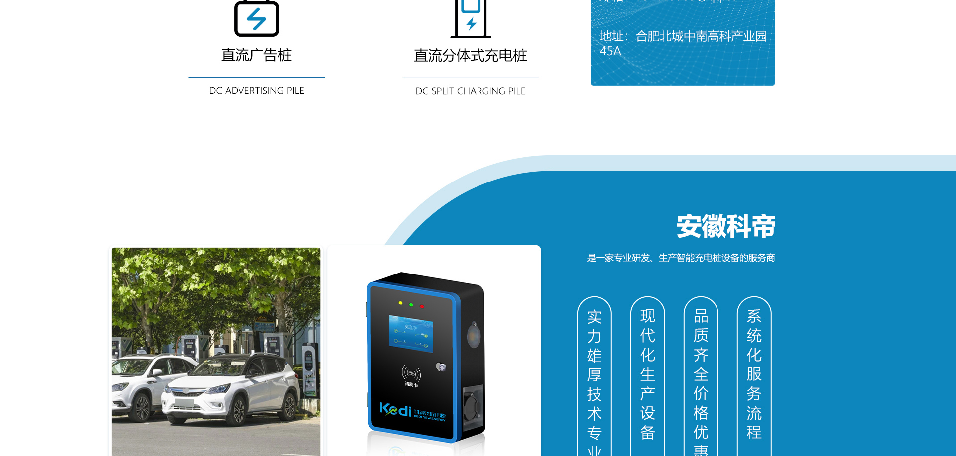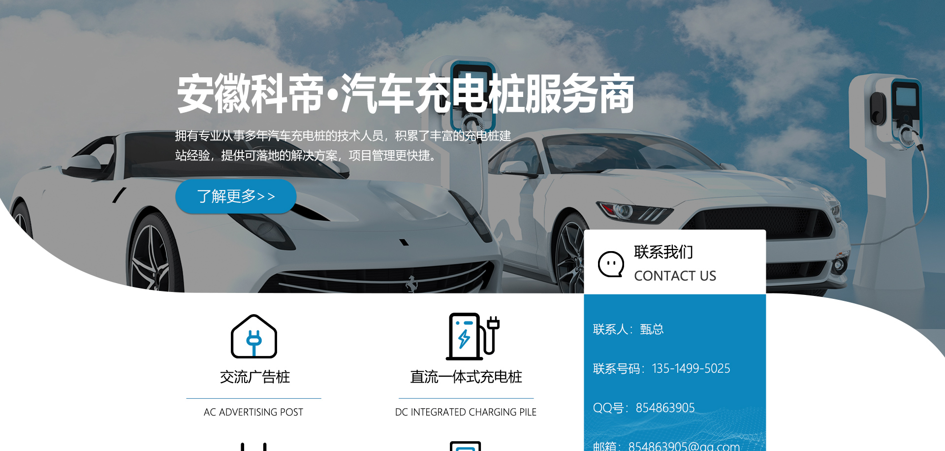 安徽科帝新能源科技有限公司坐落于安徽省會(huì)-合肥,是一家研發(fā)、生產(chǎn)智能充電樁設(shè)備,汽車充電站后臺(tái)監(jiān)控管理系統(tǒng)和生產(chǎn)高壓開關(guān)設(shè)備的企業(yè).由專門的研發(fā)團(tuán)隊(duì)、管理團(tuán)隊(duì)按照現(xiàn)代化企業(yè)制度規(guī)范設(shè)立的有限責(zé)任公司。致力于為能源智能、安全的應(yīng)用和節(jié)能減排提供整體的技術(shù)與產(chǎn)品解決方案。科帝集研發(fā)、設(shè)計(jì)、生產(chǎn)、銷售以及服務(wù)于一體,在電動(dòng)汽車充電方案,充電設(shè)施建設(shè)和城市配電方面擁有廣泛的技術(shù)研究及經(jīng)驗(yàn)積累,為客戶提供安全、智能的充電設(shè)備及充電運(yùn)營站建設(shè)一體化解決方案。并堅(jiān)持以人為本、質(zhì)量為先、顧客至上、不斷創(chuàng)新”的企業(yè)理念,為能源行業(yè)的發(fā)展、節(jié)能減排做出重大的貢獻(xiàn)。公司擁有豐富的產(chǎn)品種類,目前科帝已研發(fā)生產(chǎn)了三十多種產(chǎn)品,充電設(shè)備有直流一體式充電樁、直流分體式充電樁、直流廣告樁、交流廣告樁、廣告一體樁、壁掛交直流樁;等多種充電設(shè)備;每一款產(chǎn)品都是精心打造,力求為客戶提供優(yōu)越的用戶體驗(yàn)。展望未來科帝將通過持續(xù)的自...